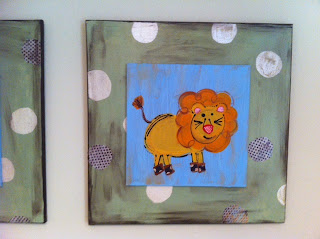 Drum roll, please! My awesomely talented friend Sarah (whom I've mentioned before) has done it again. Lawd, she is the best thing with a paintbrush! I showed her my nursery colors and commissioned her (how fancy am I? Ha.) to paint 3 canvases for Campbell's nursery. It was easy to put my complete trust in her, and I'm glad I did. Look how perfect these are!